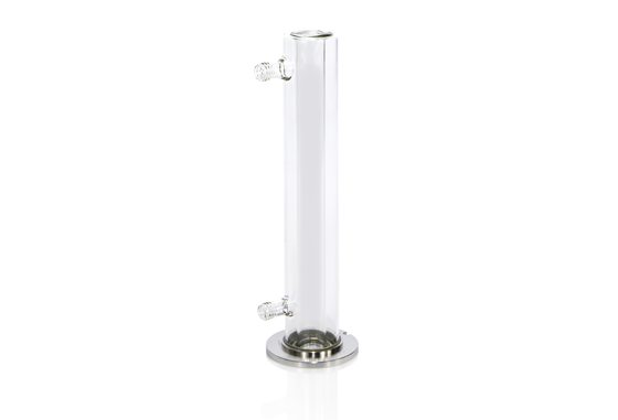 Die temperierte Messsäule CY4504 ermöglicht Schaumanalysen bei kontrollierten Temperaturen bis 90 °C und ist mit einem Innendurchmesser von exakt 20 mm für kleine Probenvolumina ausgelegt. Durch den Innenraum der Doppelwand aus hochwertigem Borosilikatglas wird über zwei Anschlüsse das Temperiermedium hindurchgeleitet. Die Säule ist für das Gasaufschäumen vorgesehen und lässt sich dank des mit einer Nut versehenen Edelstahlflansches besonders einfach in den Probenhalter einsetzen.
