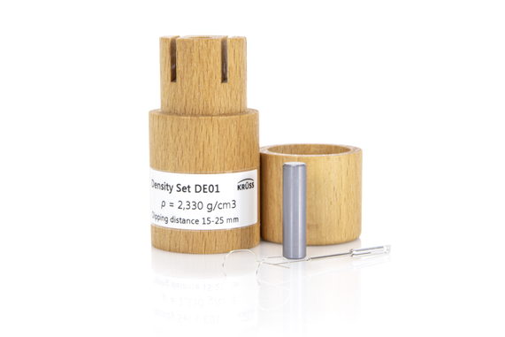 Das Set DE01 ermöglicht die genaue Bestimmung der Dichte von Newtonschen Flüssigkeiten anhand der Auftriebskraft an einem Tauchkörper (archimedisches Prinzip). Die Materialien – Silicium-Kristall für den Tauchkörper und Platin-Iridium für den dazugehörigen Halter – sind inert und können für fast alle Flüssigkeiten bis zu einer Dichte von 2,3 g/cm3 verwendet werden. Für die sichere Aufbewahrung des Sets sorgt eine hochwertige Holzbuchse.