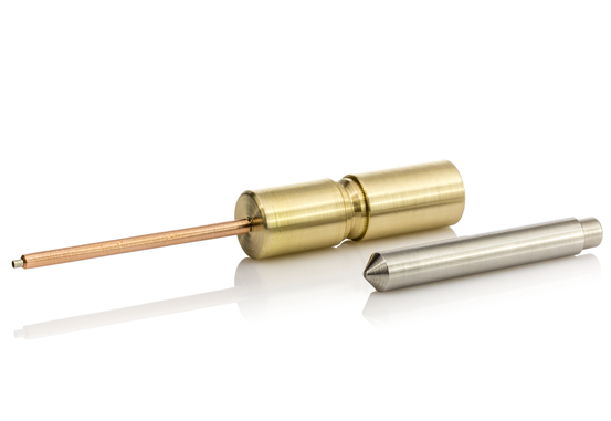 Der Aufschmelzzylinder DO44 ist aus robustem und gut wärmeleitendem Messing und dadurch ideal für das Aufheizen und Dosieren mit unseren Hochtemperatur-Dosiereinheiten. Der Innendurchmesser ist auf genaue Passung mit dem zugehörigen Dosierkolben aus Edelstahl ausgelegt.