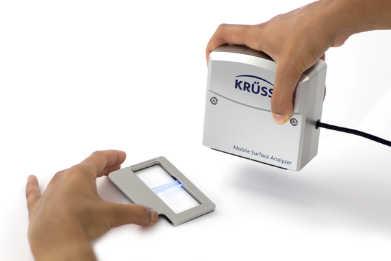 Manchmal muss die freie Oberflächenenergie genau an einer bestimmten Position gemessen werden, zum Beispiel um einen eng abgegrenzten beschichteten Bereich zu analysieren. Dosieren Sie mithilfe des beleuchteten Positionierwerkzeugs PA3900 die Tropfen exakt auf die gewünschten Stellen.