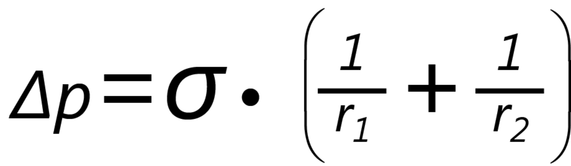 According to the Young-Laplace equation, with a curved liquid surface, there is a relationship between the radii of curvature r1 and r2, the surface tension σ and the Laplace pressure p: