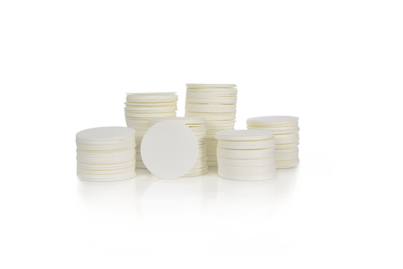 The use of a FL4551 filter paper is particularly recommended for foaming in the case of severely soiling samples. The filters are available in pack sizes of 1000 pieces. The paper is made of chemically pure cellulose, is compatible with our measuring columns with an inner diameter of 40 mm without having to be cut to size and can be used with most liquids. The pore size is 12 to 15 µm, about the same porosity as our FL4534/FL4538 glass filters.