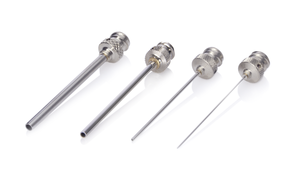 The choice of a suitable needle diameter maximizes the accuracy of surface and interfacial tension measurements using the Pendant Drop method. For this purpose, the needle set NE96 contains stainless steel needles with a length of 38 mm and different outside diameters (0.5/1.0/2.0/3.0 mm), in order to achieve an ideal drop shape for analysis in every measuring range. In the set NE93, the four different needles are also PTFE-coated and optimize the analysis of liquids with good wetting properties. The coating prevents external wetting of the needle and ensures absolutely symmetrical drop shapes.
