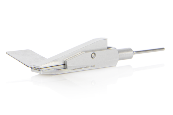 In order to carry out tensiometric measurements of the contact angle on foil and film samples using the Wilhelmy method, these samples are fixed firmly with the SH0602 special sample holder. The wide pressing surface of the clip that is arranged level with the shaft ensures the sample is firmly fixed and simplifies straight and vertical positioning of the sample during immersion in the test liquid.