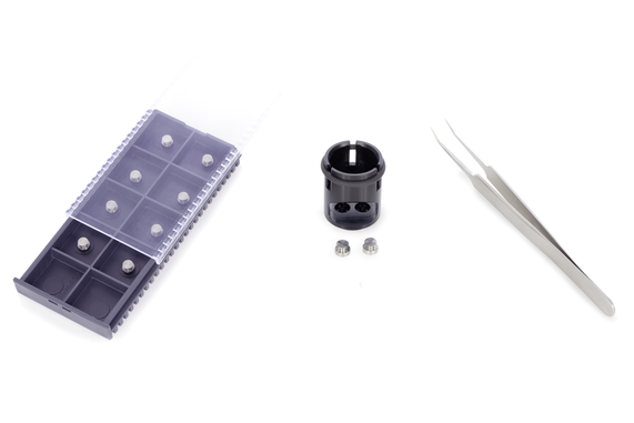 The SH3202 comes with 10 sample pedestals (can be reordered as SH3200) and tweezers for easy and contamination-free placement.