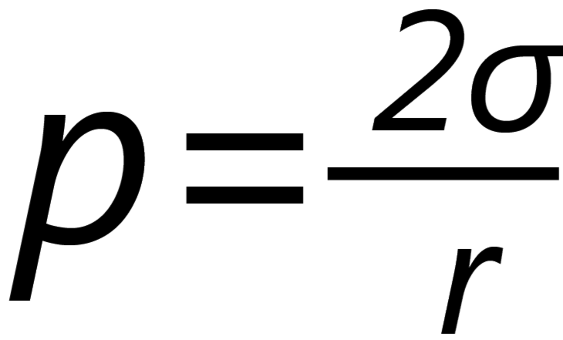 According to the Young-Laplace equation, the internal pressure p of a spherical gas bubble (Laplace pressure) depends on the radius of curvature r and the surface tension σ.