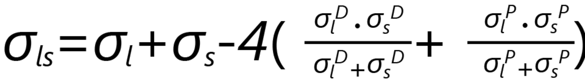 Building on the Fowkes method, the interfacial tension σsl is calculated based on the two surface tensions σs and σl  and the similar interactions between the phases. These interactions are interpreted as the harmonic mean of a disperse part σD and a polar part σP of the surface tension or surface free energy: