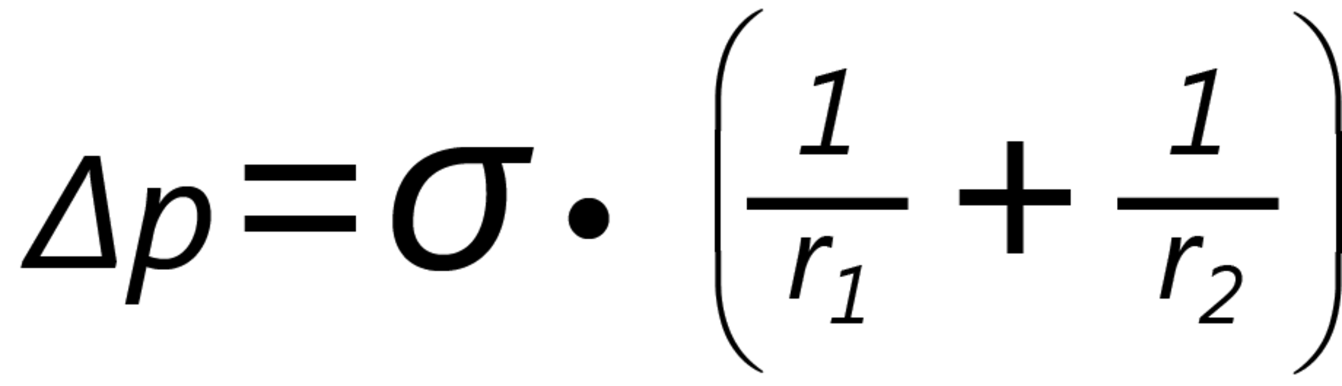 An increased pressure is produced inside the drop as a result of the interfacial tension between inner and outer phase. The correlation between the pressure difference Δp, the radii of curvature of the surface r1 and r2 and the interfacial tension is described by the Young- Laplace equation: